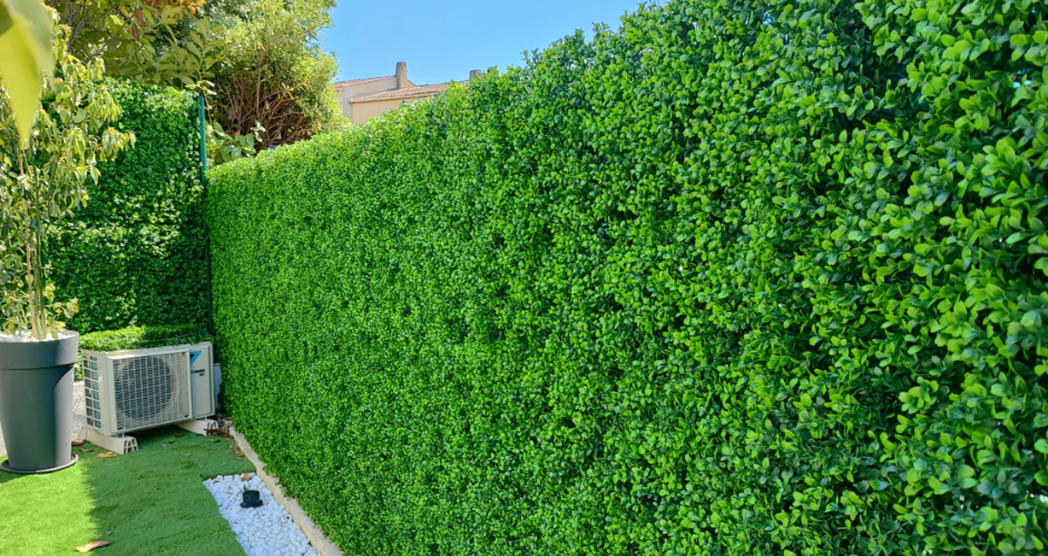 La différence avec la haie naturelle est qu’elle est faite de feuilles synthétiques et qu’il n’est donc pas nécessaire de l’entretenir, que ce soit l’arrosage, la taille ou encore le traitement contre les parasites. En effet, une haie naturelle demande un arrosage régulier et bien dosé pour éviter de la noyer. Il faut également la tailler car comme toute plante, ses branches vont pousser ce qui la rend généralement moins esthétique et peut gêner les maisons voisines.